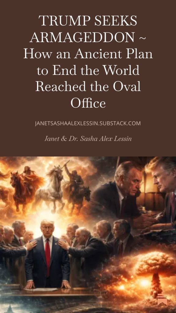 In the new article “Trump Seeks Armageddon,” authors Janet Kira Lessin and Sasha Alex Lessin, Ph.D., trace the unexpected path of end-times prophecy from a 1970 bestseller to the highest levels of US military planning. The piece analyzes the convergence of influential theological frameworks, secret political organizations like ‘The Family,’ and the ‘situational immorality’ Roy Cohn taught Donald Trump. It raises profound questions about the divine right of kingship in 2026.
