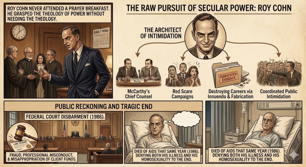 Roy Cohn never attended a prayer breakfast. He grasped the theology of power without needing the theology.