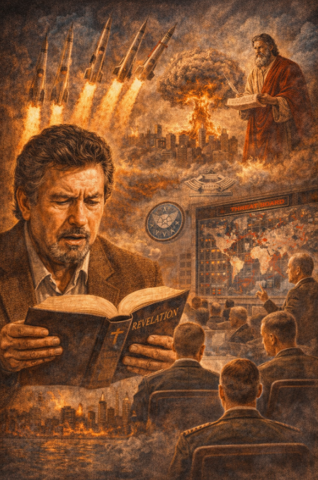 In 1970, Hal Lindsey published The Late Great Planet Earth. It sold twenty-eight million copies and became the bestselling nonfiction book of the decade. Lindsey then briefed the Pentagon, the military intelligence committees, the State Department, and the Air War College on a central argument: the nuclear war between the superpowers was not a catastrophe to prevent. It was God’s plan. Armageddon was the destination.