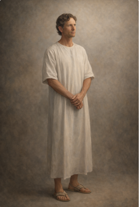 In this account, Solomon Centers, a fictional composite figure drawn from lived experience, appears as a reflective guide—not a hero of violence, but a witness to how war programming overtakes rulers and resisters alike. Solomon is blue-eyed, clean-shaven, his wavy brown hair lightly threaded with white and neatly combed over his ears. He wears a simple white tunic and pandanus sandals, a reminder that wisdom does not require uniforms, medals, or weapons.