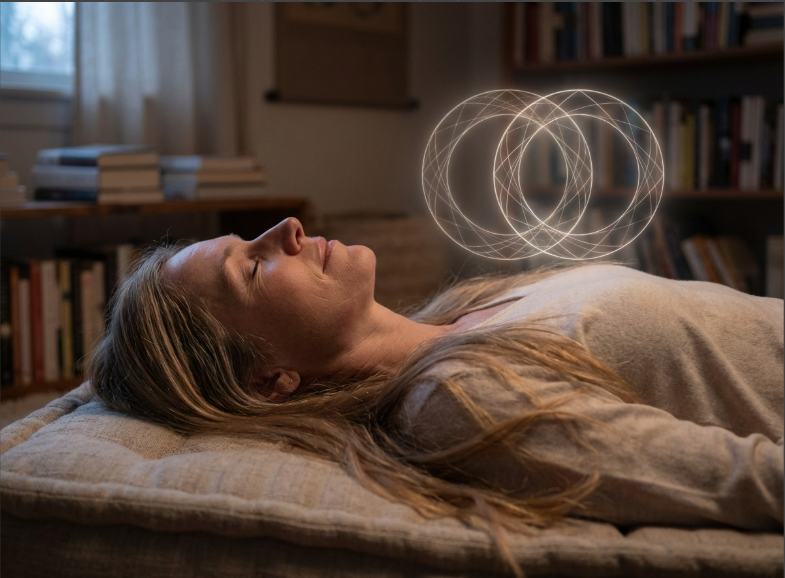 Janet Kira Lessin, 55, a veteran consciousness researcher and radio host, stretched out on the futon while her husband, therapist Dr. Sasha Lessin, settled into his chair beside her. They had conducted hundreds of sessions in this room—hypnotherapy, Voice Dialogue, catharsis work, contact with what they describe as higher-dimensional beings. But nothing they had done before prepared them for what happened next.