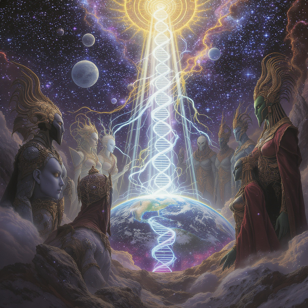 Humanity is not an accident, nor a random byproduct of evolution—it is a living archive of the cosmos. Our species carries within its DNA the fingerprints of countless contributions: genetic refinements, energetic calibrations, spiritual infusions, and scientific artistry woven across eons. Like a great symphony, each note from different civilizations—be they stellar, interdimensional, or ancient beyond reckoning—has been tuned to harmonize within the human form.